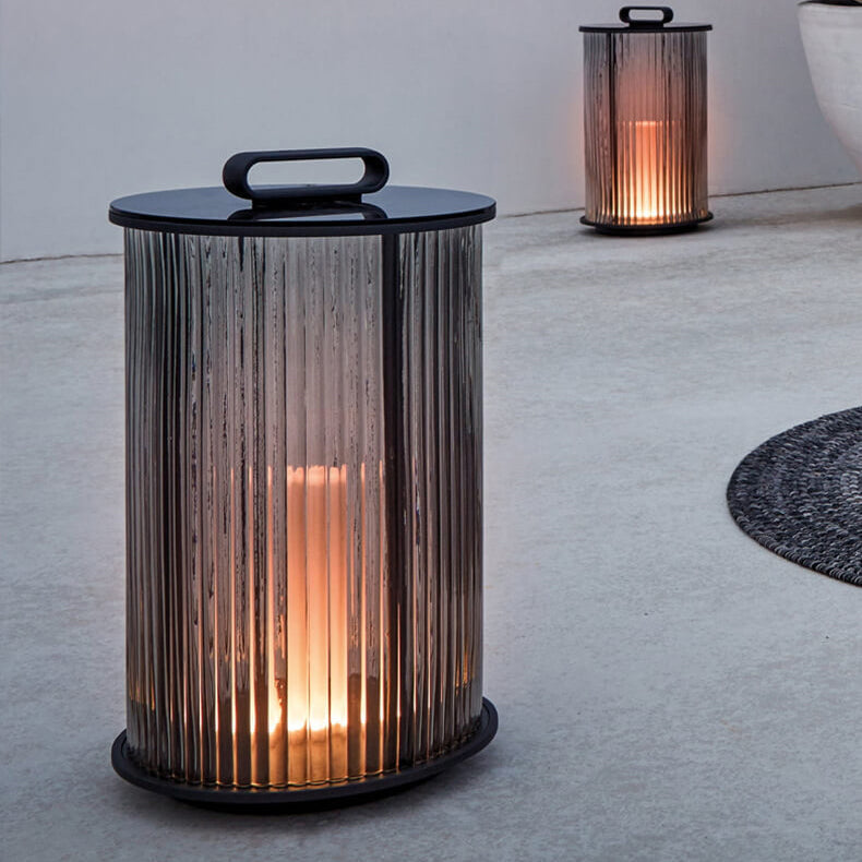 La costruzione in acciaio inossidabile e vetro garantisce durabilità negli ambienti esterni.