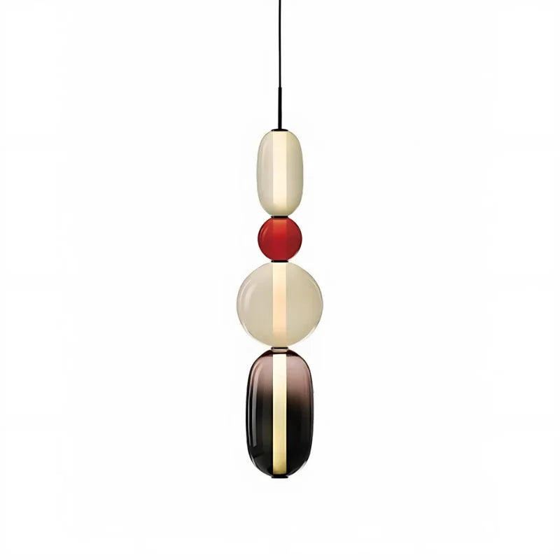 Realizzata con una combinazione di vetro, metallo e acrilico, ogni variazione di design presenta elementi in vetro dalla forma unica che filtrano delicatamente la luce attraverso tonalità ricche. Quando illuminata, COSMOS crea un bagliore ipnotico che appare artistico ma raffinato, integrandosi perfettamente in interni moderni, nordici e contemporanei.