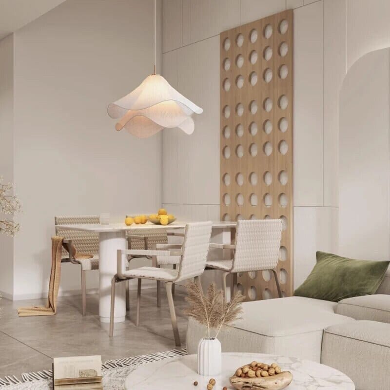 HANA brings a soft, romantic atmosphere into your space with its elegant flower petal design. Inspired by natural forms, this fabric chandelier adds warmth and charm while creating a gentle, inviting glow. Its sculptural floral silhouette makes it a decorative focal point that enhances both classic and contemporary interiors.
