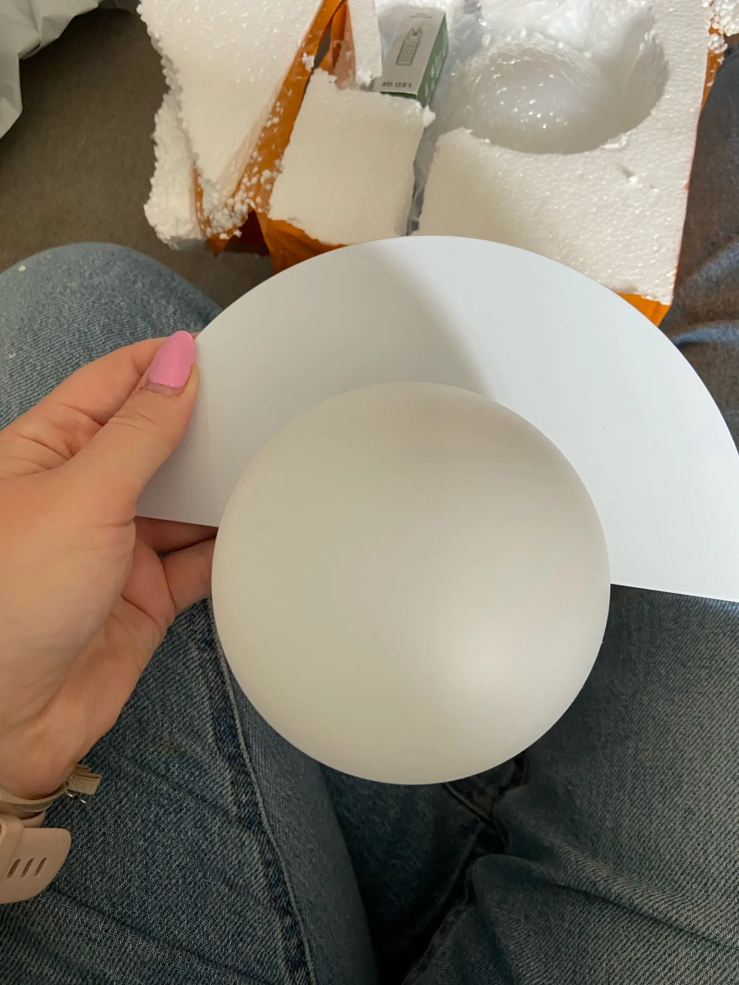 Arrived perfectly packaged, equipped with the necessary for assembly and with a bulb included. Sturdy and made of good material, the colored part, in plastic the lampshade!! I like it.