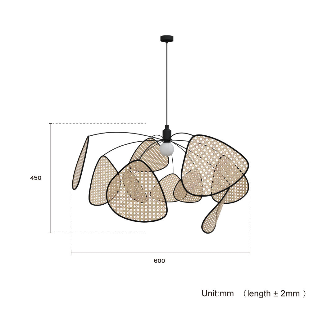 Designed to soften illumination and reduce glare, the rattan shade creates comfortable ambient light ideal for everyday living. A discreet metal suspension supports the structure and allows the bulb to sit elegantly at the center.