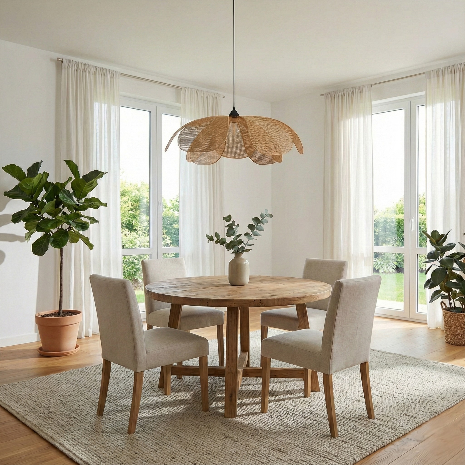 Crafted from lightweight yet durable rattan and metal, PETAL blends effortlessly into modern, bohemian, coastal, and rustic interiors. The open woven structure gently diffuses light, creating a cozy and balanced illumination ideal for everyday living.