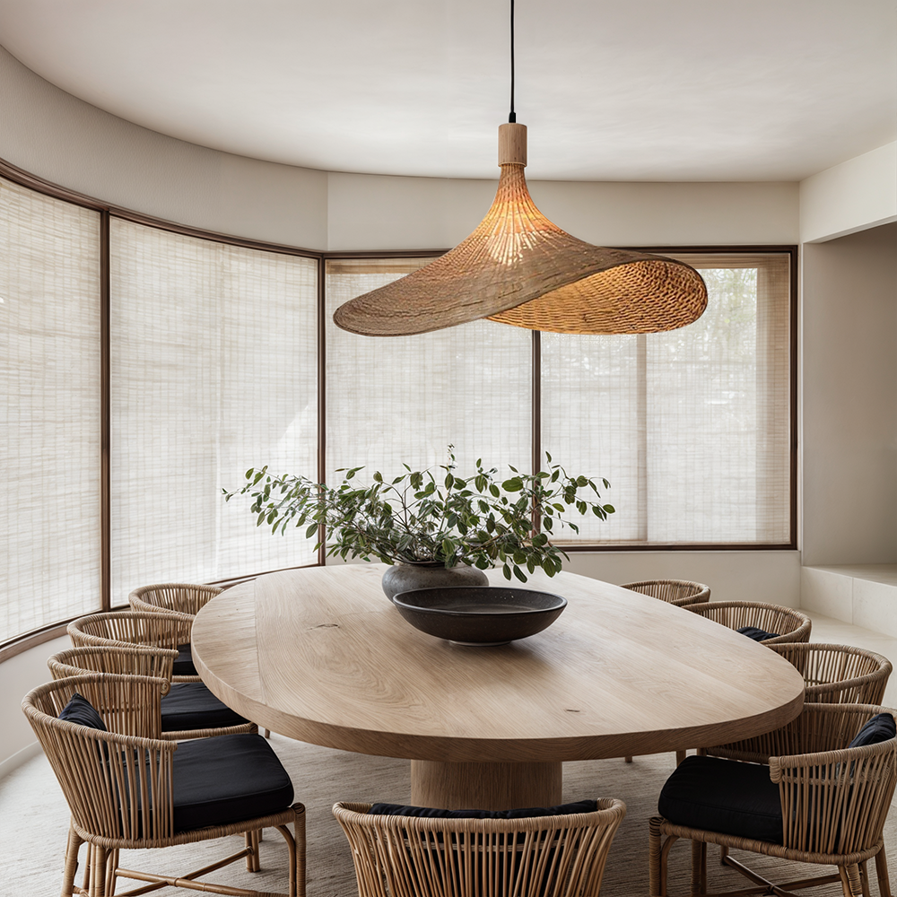 Designed to be both stylish and durable, the bamboo shade gently filters light to create a diffused, ambient mood. Whether placed above a dining table, in a bedroom, or in a cozy reading corner, REED delivers calm lighting with visual appeal and timeless charm.