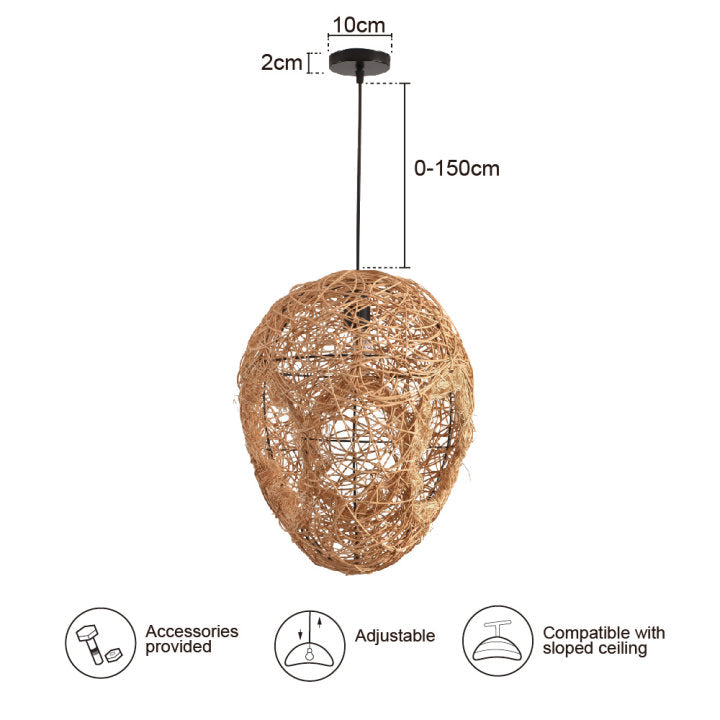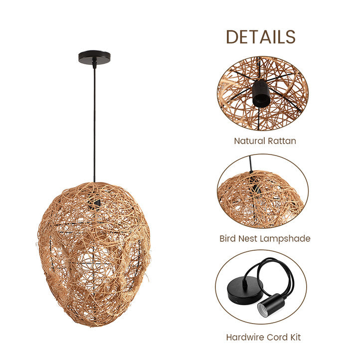 SARANG brings the calm warmth of nature into interior spaces through its handwoven rattan nest form. Inspired by organic structures found in nature, this pendant light creates a cozy and inviting atmosphere while adding texture and visual softness to the room.Crafted using A-grade natural rattan, each piece reflects traditional weaving techniques and subtle variations that make every pendant unique. SARANG integrates seamlessly into bohemian, coastal, rustic, and modern interiors, offering a relaxed yet refined lighting presence.SARANG is ideal for dining rooms, living rooms, bedrooms, and hallways, where it provides gentle ambient light and enhances the natural character of the space.