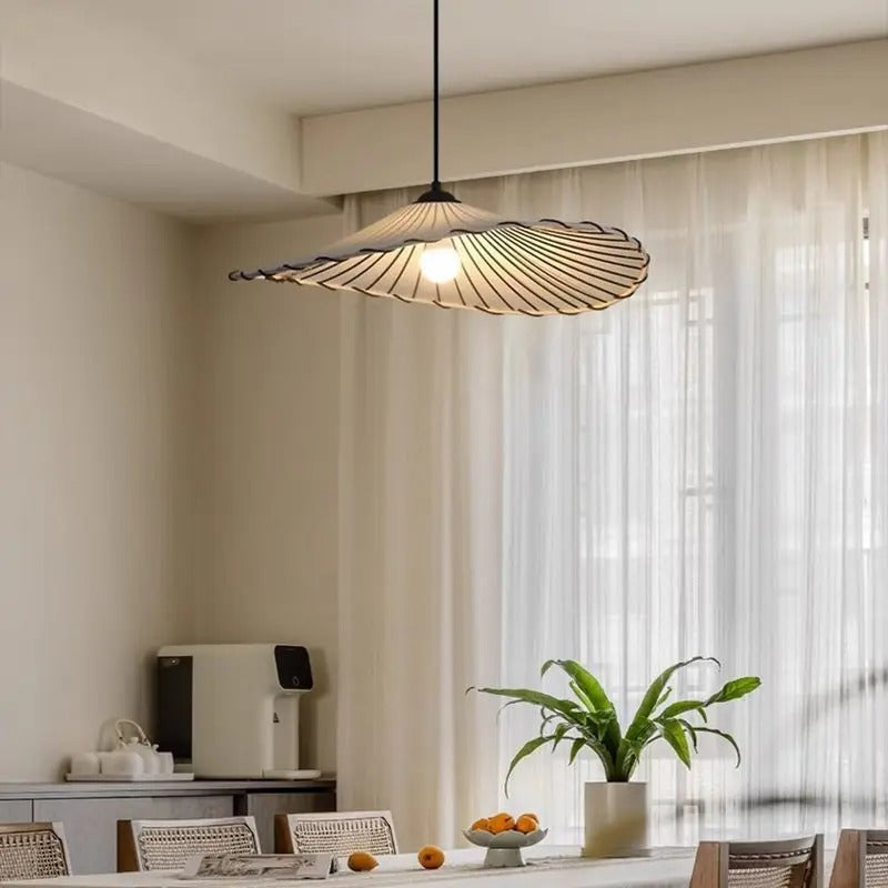 The handwoven fabric shade gently diffuses light, creating a soft, ambient glow that enhances comfort without overwhelming the space. This controlled illumination makes SENSU ideal for dining areas, bedrooms, and studies where atmosphere matters as much as function.