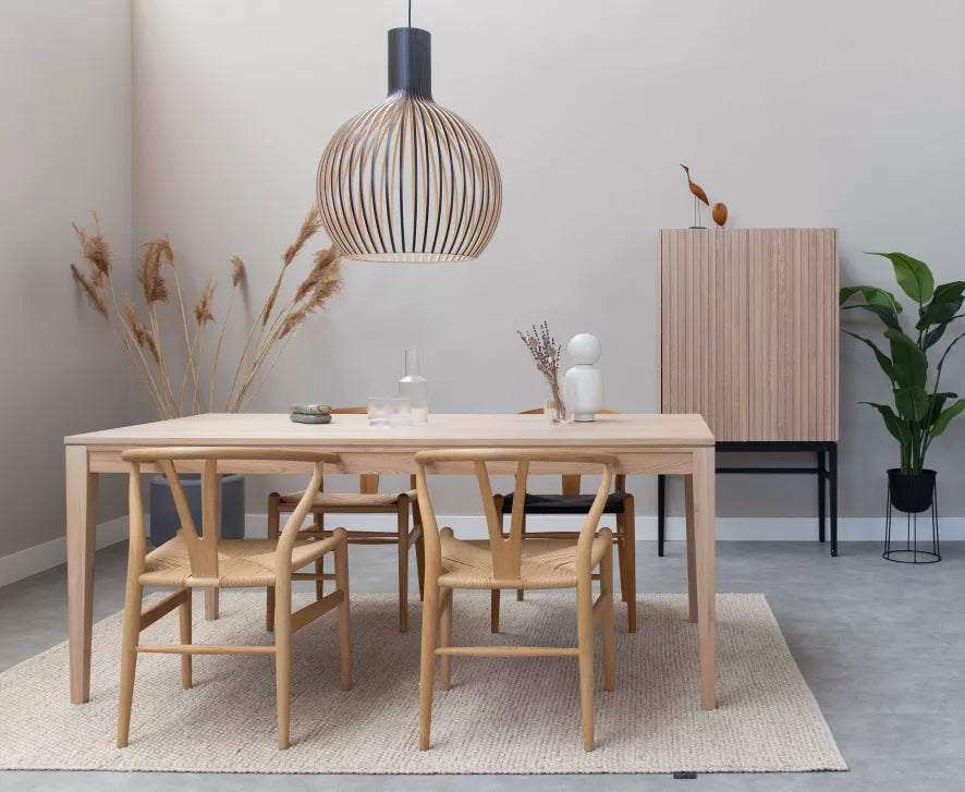STRIPE is a pendant lamp defined by clean linear rhythm and natural material expression. Crafted from carefully selected Finnish birchwood, its vertical wooden slats form a sculptural silhouette that feels both light and architectural.