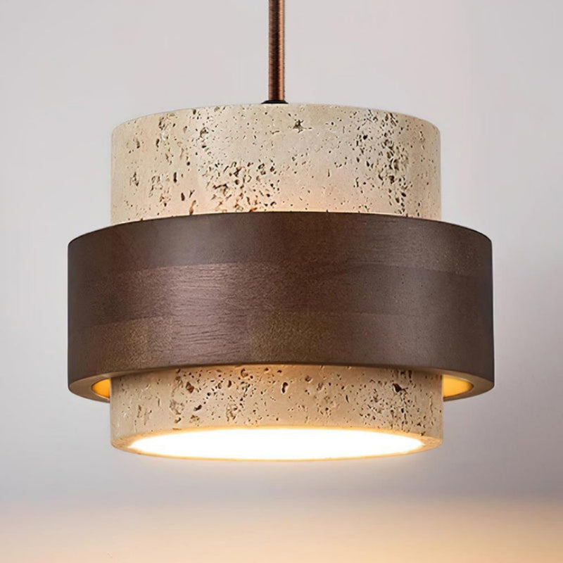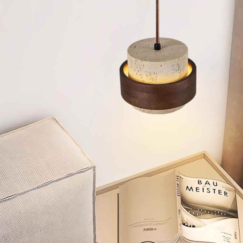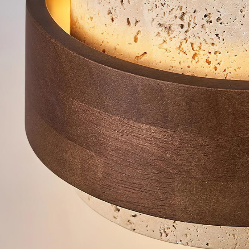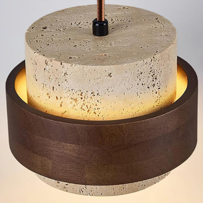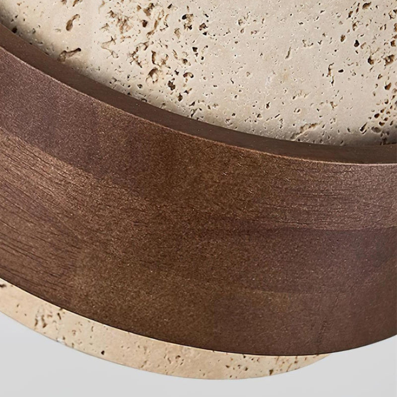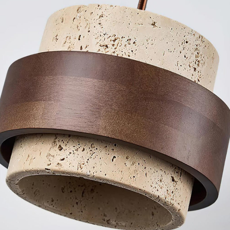 A Lâmpada Suspensa Crest combina o minimalismo moderno com o charme intemporal dos materiais naturais. Fabricada em pedra travertina, madeira e metal, a sua silhueta cilíndrica elegante irradia sofisticação discreta. O contraste suave entre o corpo em travertino bege e os acentos em tom noz torna-a uma adição refinada a qualquer espaço contemporâneo de estar, área de jantar ou interior boutique.