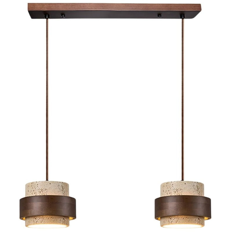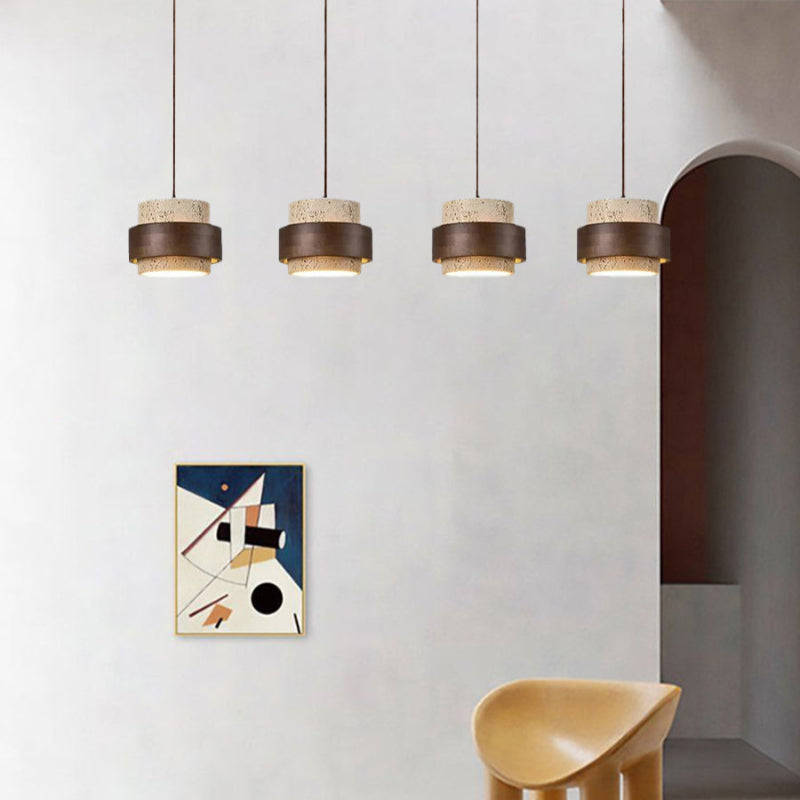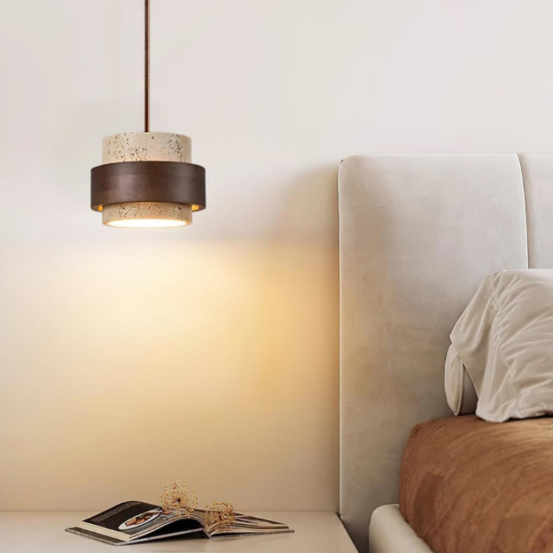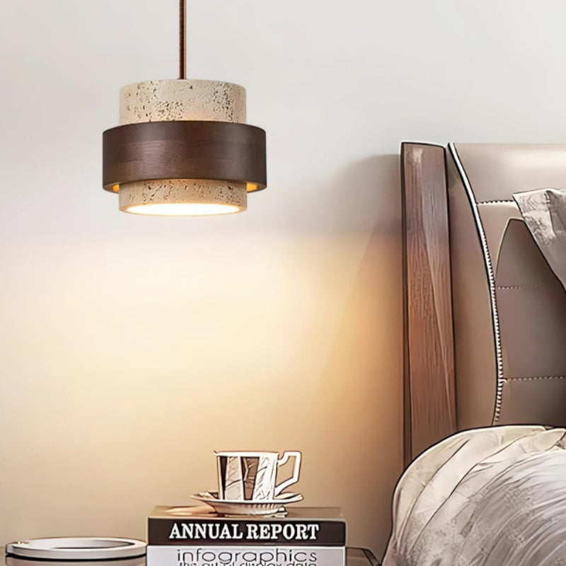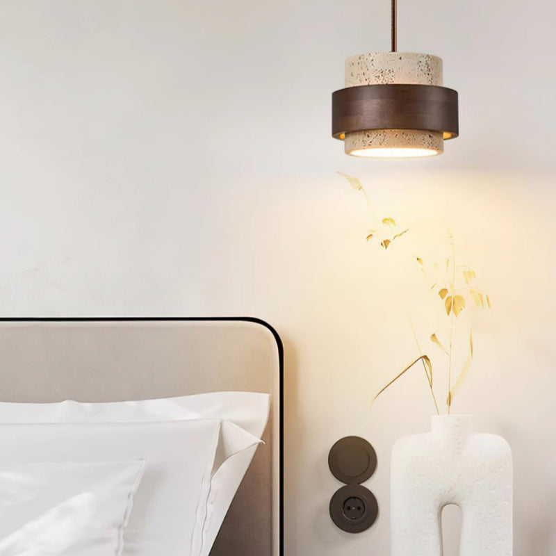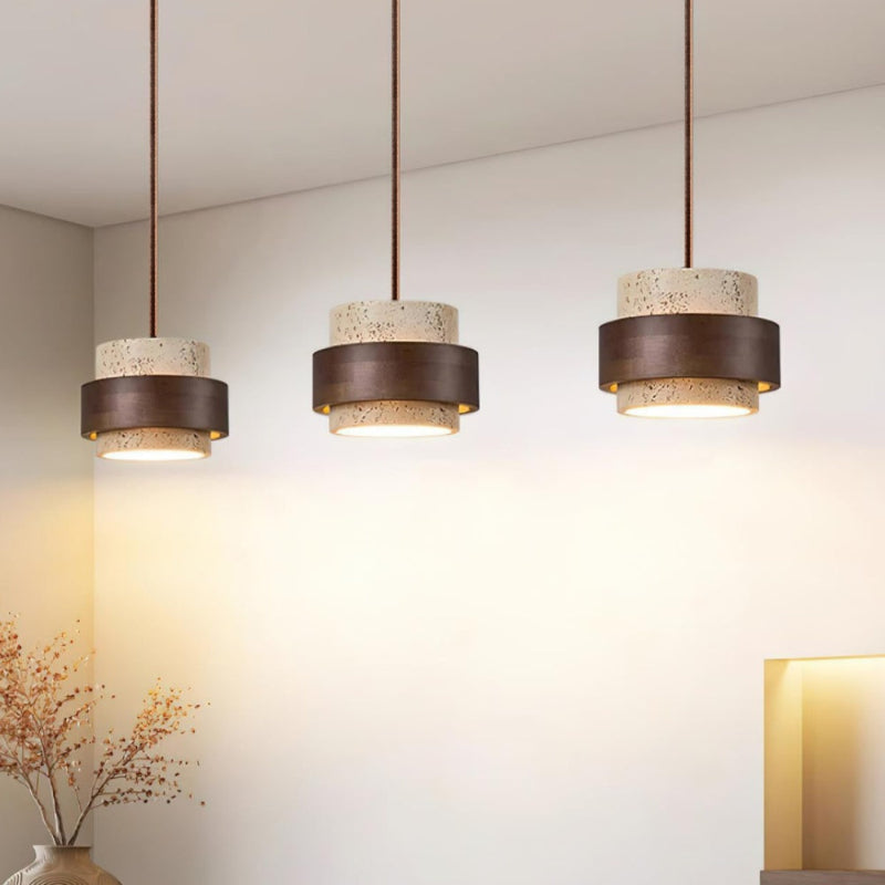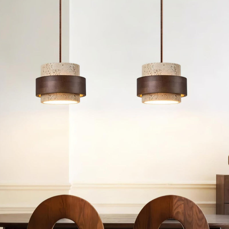 A Lâmpada Suspensa Crest combina o minimalismo moderno com o charme intemporal dos materiais naturais. Fabricada em pedra travertina, madeira e metal, a sua silhueta cilíndrica elegante irradia sofisticação discreta. O contraste suave entre o corpo em travertino bege e os acentos em tom noz torna-a uma adição refinada a qualquer espaço contemporâneo de estar, área de jantar ou interior boutique.