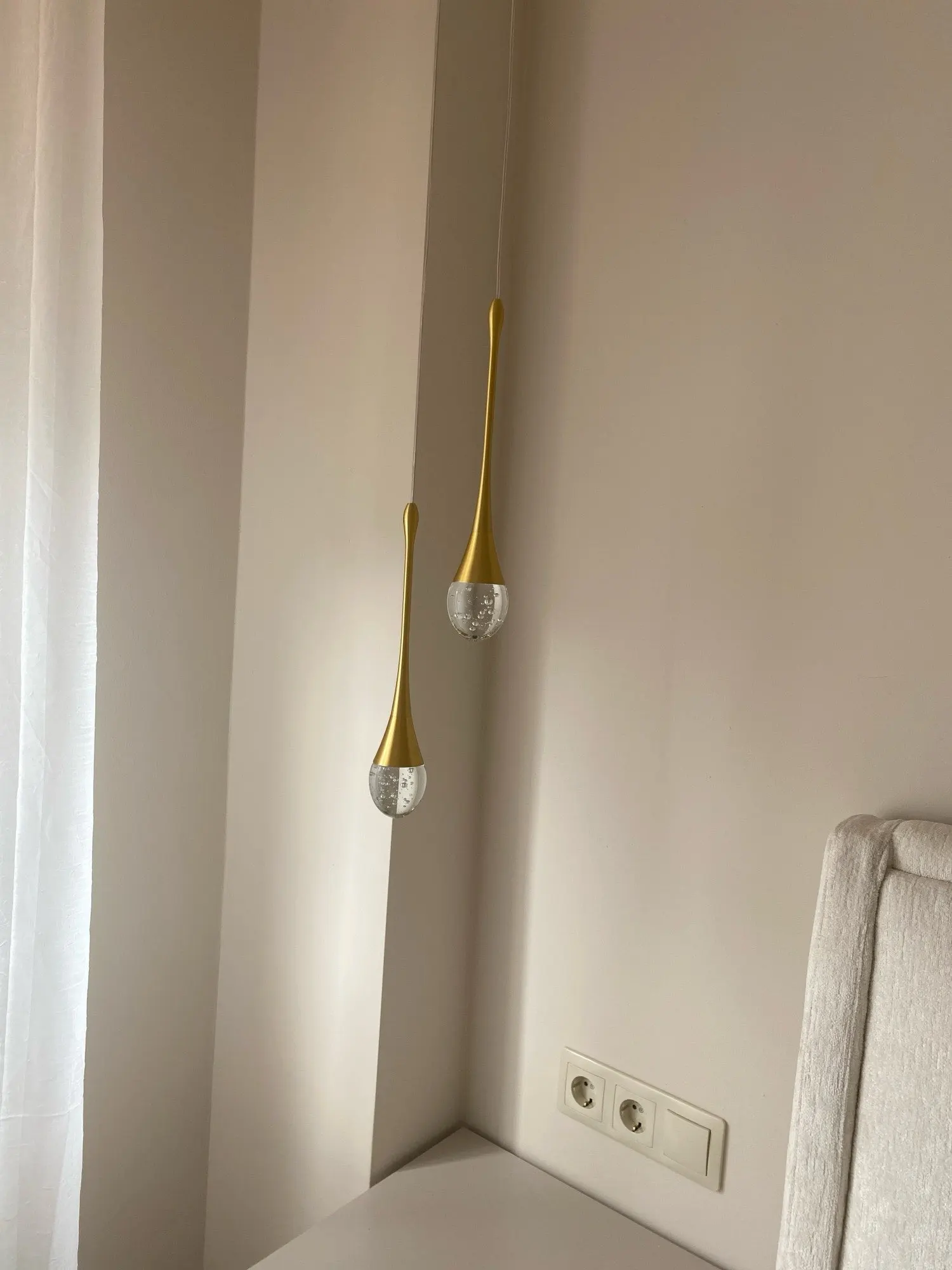 Cada pendente em forma de gota emite um brilho quente e acolhedor, realçado por iluminação LED de precisão. Escolha entre configurações de 1 cabeça, 2 cabeças ou 3 cabeças para adequar ao tamanho e estética do seu espaço.