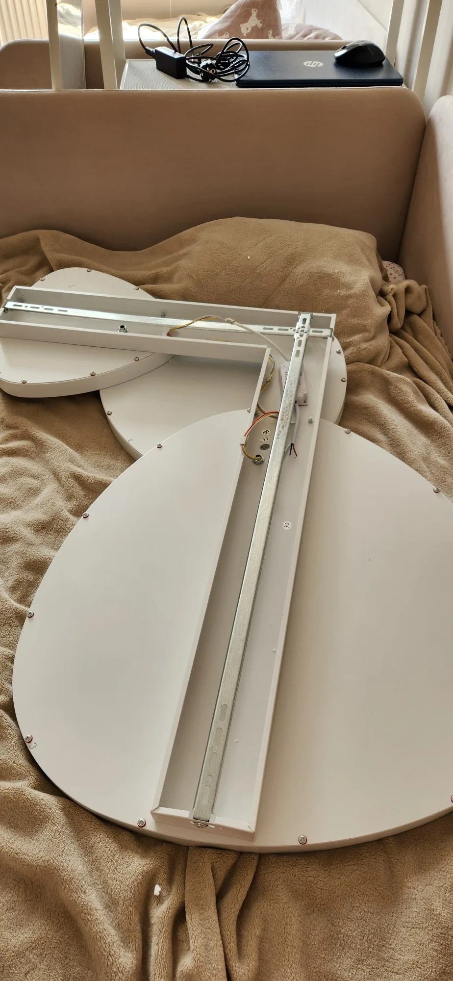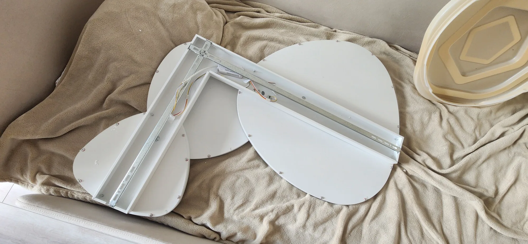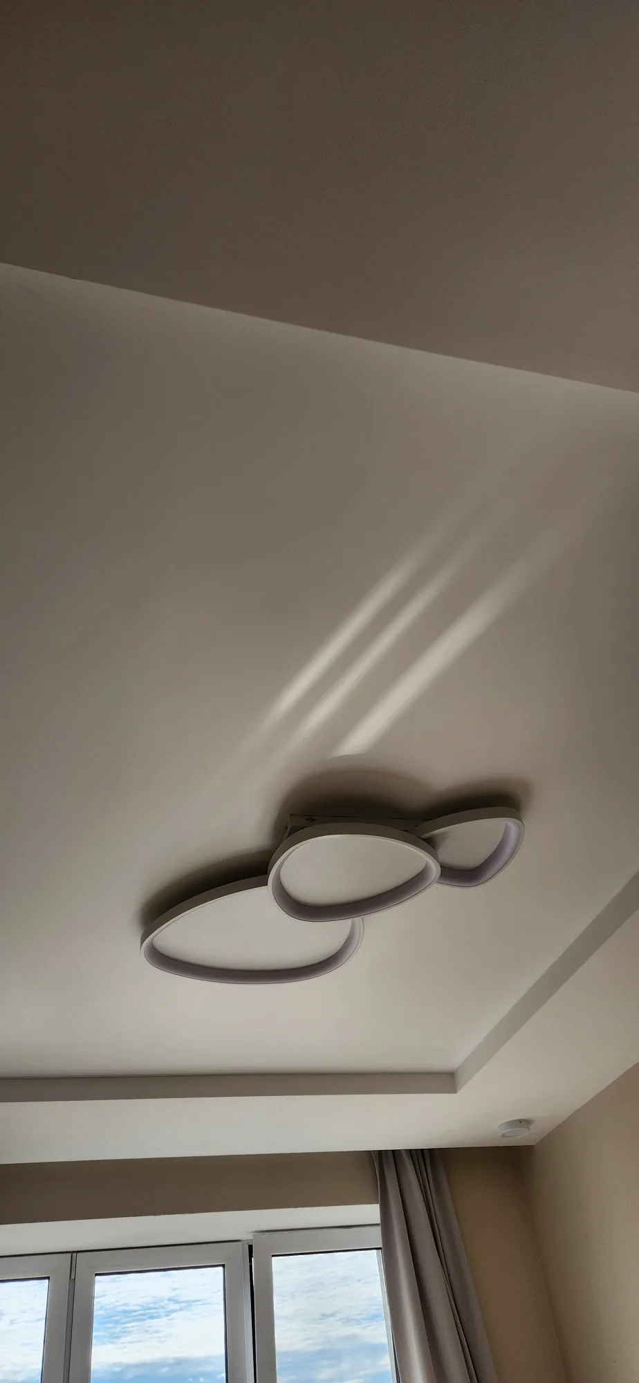 A wonderful lamp, matches the photo, everything works! Delivery was 10 days faster than expected. Despite its large size, it looks very aesthetically pleasing on the ceiling. Thank you! The only thing is! 3-point ceiling mount (pictured) - we have a suspended ceiling with 1 recessed light - had to call a technician to make additional recesses. For concrete, gypsum board - ideal.